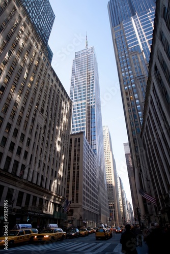 skyscraper, city, urban, building, architecture, street, highrise, downtown, city landscape, metropolis, glasses, concrete, steel, tower, structure, facades, modern, contemporary, business, finance, commerce, urbanism, infrastructure, development, jungle, bustling, bustle, traffic, level, perspective, angle, view, day, sunny, blue, sky, shadow