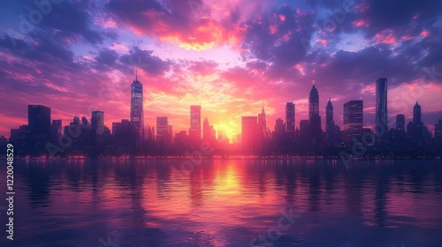new york city, skyline, sunset, skyscraper, urban, vibrant, orange, purple, architecture, city life, iconic, reflections, river, silhouette, detail, calm, hue, landscape, city landscape, modern, evening, scenery, beautiful, view, metropolis, gloaming, artistry, dramatic, colourful, skyline, building, night, sunlight, cloud, dusk, romantic, panorama, atmosphere, beauty, visual, travel, photo, inspiration, nature, serenity
