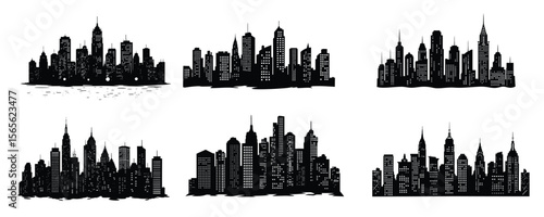 New York City Skyline Silhouette Vector on White Background With Urban Skyscraper Cityscape Illustration