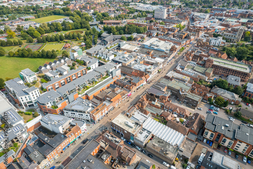 Newbury, Downtown center, Berkshire, South England. Beautiful aerial view