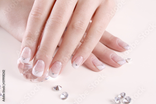nail, nail, fingernail, hand, french, nail art, nail salon, flower, rose, chain, pearl necklace, bead, sphere, manicure, pedicure, finger, table, flower, hand, arm, glisten, negative, colours, gold, file