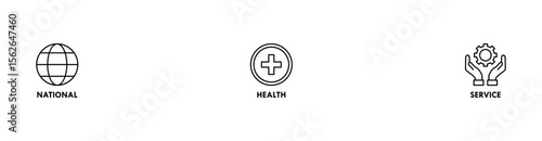 NHS banner web icon vector illustration concept of national health service with icon of globe, hospital, health insurance, ambulance, patient, and medical apps