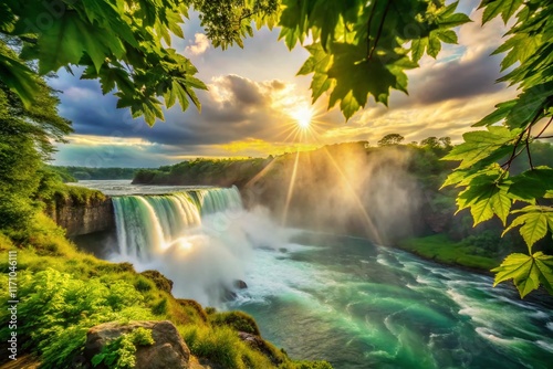 niagara falls, double exposure, canada, lake ontario, waterfall, forest, glen, greenery, leaf, sunlight, mist, cascade, powerful, majestic, scenic, travel, tour tourism, photo, image, picture, hi-res, vibrant, lush, green, natural, beautiful, stunning, amazing, breathtaking, dramatic, moody, aethereal, mystical, peaceful, serene, tranquil, relaxing, wilderness, environment, ecology, conservation, park, national park