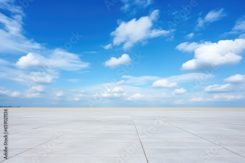 nice, blue, sky, floor, cloud, cloudscape, background, empty, grey, horizon, no people, panoramic, presentation, scenery