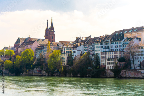 Nice day in Basel before evening from riverside , The Charming city in Switzerland