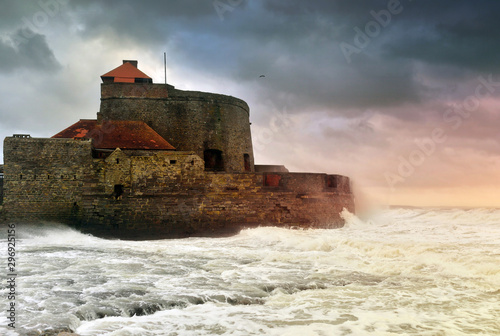 castle, sea, round, architecture, fortress, aged, fort, landscape, travel, heaven, building, ancient, mediaeval, landmark, europa, history, coast, saint-pierre, blue, scotland, water, wall, ocean, island, historic, vauban, storm, storm, sunset, wave, tour tourism