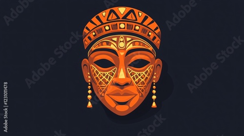 orange, mask, flat, vector, illustration, cultural, african, tribal, traditional, ethnic, art, design, hand-made, spiritual, ritual, symbol, decorative, symbolic, craft, ethnicity, heritage, culture, orange color, graphic, beautiful, modern, decoration, ornament, pattern, celebration, masking, festive, custom, indigenous