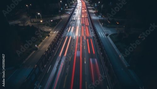 Night City Highway Stunning Aerial View of Traffic Light Trails. Traffic Blurry Light Trail Photography