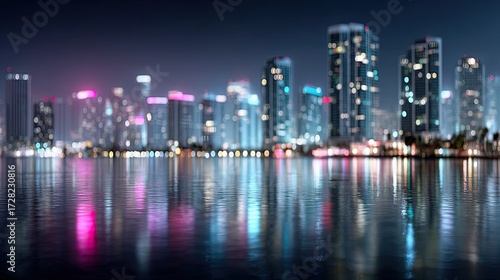 city, night, skyline, water, urban, building, light, downtown, city landscape, architecture, modern, evening, dark, blue, illuminated, scene, view, landscape, ocean, sea, coast, bay, metropolis, scenic, travel, tour tourism, district, horizon, exterior, landmark, panorama, skyscraper, river, twilight, background, abstract, vibrant, colourful