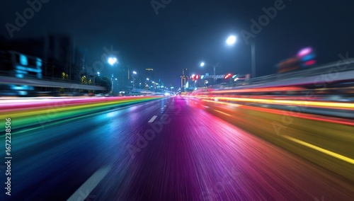 night, city, street, motion, blur, vibrant, colourful, light, speed, road, urban, fast, moving, car, traffic, rainbow, pastel, illuminated, building, perspective, long, exposure, dark, horizon, streetscape, vehicle, transportation, future, dynamic, technology, progress, energy, modern, landscape, nightlife, illumination, colours, high-coloured, street light, city landscape, speeding, glow, lightshow