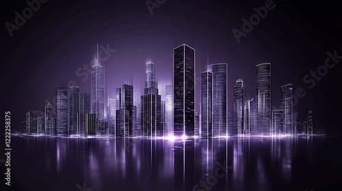 city, skyscraper, night, metropolis, urban, skyline, building, digital, futuristic, modern, architecture, light, glow, purple, dark, technology, illustration, design, abstract, graphic, water, scene, landscape, city landscape, tower, structure, silhouette, line, geometric, artwork, image, graphic, neon, nightlife, view, panorama, vibrant, modernity, future