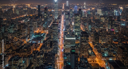 city landscape, night, urban, metropolis, building, skyscraper, light, illuminated, city, aerial, view, tower, architecture, city landscape, modern, downtown, evening, darkness, skyline, high, up high, perspective, street light, traffic, road, panorama, city lights, night photography, long exposure, illumination, urban scene, city landscape, night view, highrise