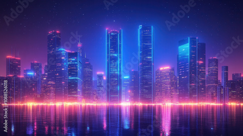 Night cityscape with illuminated monolithic towers
