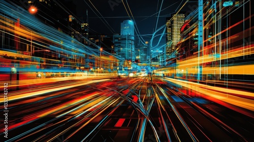 city, night, light, traffic, street, urban, speed, motion, blur, energy, dynamic, modern, technology, futuristic, abstract, vibrant, colourful, building, skyscraper, line, pattern, movement, fast, rush, glow, bright, illuminated, electric, power, transport, vehicle, travel, connectivity, network, infrastructure, metropolis, cosmos, streak, dazzling, dazzle