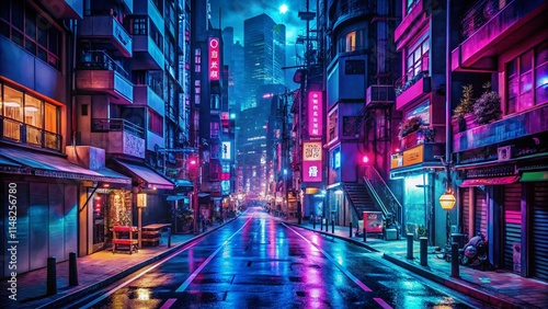 Night Divergent Cityscape: Neon Lights, Urban Exploration, Dark Fantasy Photography