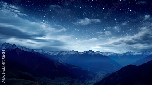 Night landscape with colorful Milky Way Beautiful mountain Starry sky with Milky Way Space background