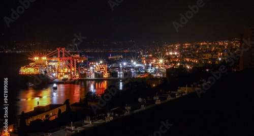 night, city, water, light, panorama, architecture, bridge, light, skyline, river, city landscape, sea, evening, europa, view, travel, town, urban, landscape, sky, building, dusk, port, harbor