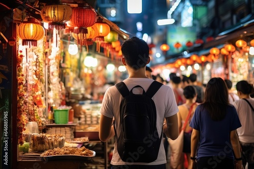 Night Market Adventure Model exploring a bustling night market - stock photography