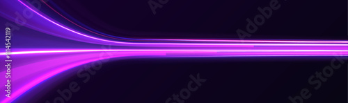 Night motorway with light effects in neon colors purple, blue and red. Big data traffic visualization, dynamic high speed data streaming traffic. City road car light trails motion background.