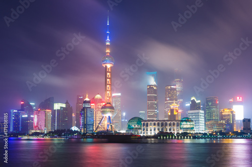 bund, financial district, building exterior, no people, built structure, water, tower, skyscraper, skyline, shanghai, river, outdoors, night, neon, modern, light, illuminated, city, china, bustling, asia, architecture