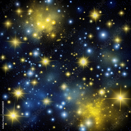 Night sky filled with golden and blue stars, glowing starry backdrop