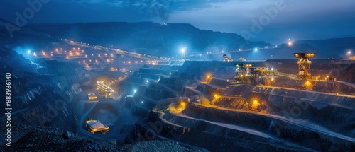 night, view, gold, mining, operation, bright, light, illuminating, site