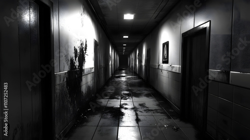 nightmare, corridor, endless, flickering, light, noise, echo, wall, paranoia, fear, darkness, claustrophobia, tension, anxiety, shadow, surreal, nightmare, illusion, distortion, mystery, danger, uncertainty, creeping, emotion, chaos, vulnerability, escape