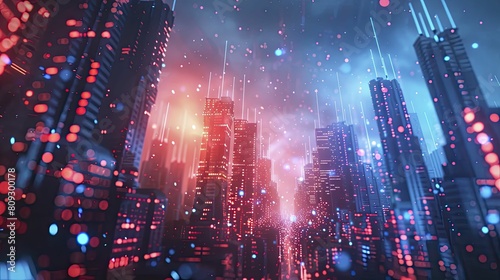 smart, high technology, city, night time, network, flow, bright, red, blue, light, illustrating, datum, futuristic, urban, digital, technology, innovation, connectivity, communication, infrastructure, information, system, urbanisation, cyberspace, city landscape, illuminated, visual, representation, movement, vibrant, dynamic, transfer, visualisation, cyber, modern, advanced, glowing, connected, networked, tied-up, bustling, colourful, efficient, city lights, electronic, city life