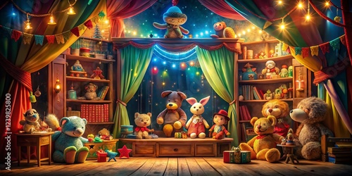Nighttime Puppet Show Stage with Storybooks and Toys