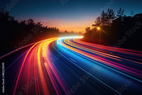 Nighttime Traffic Blur on a City Highway with Abstract Light Patterns and Long Exposure Motion