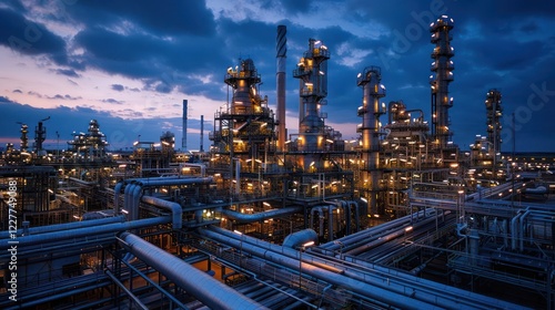 industrial, complex, night time, illuminated, structure, pipeline, sky, energy, manufacturing, technology, factory, machinery, production, environment, urban, architecture, engineering, power, infrastructure, oil, gas, process, equipment, landscape, industry, work, site, development, transport, metal, construction, facility, system, design, scene, lighting, atmosphere, city, economy, operation, innovation, sector, resource, modern, business, chemical, efficiency, safety, operation