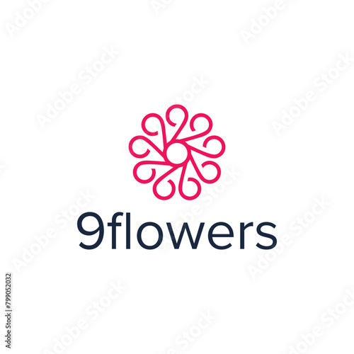 nine flowers simple sleek creative geometric modern logo design