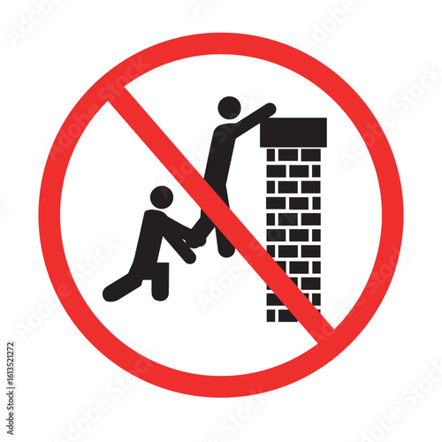 prohibited, climbing, signs, no, symbol, restriction, ban, wall, brick, safety, warning, rule, regulation, stop, forbidden, silhouette, figure, people, danger, prevention, security, caution, notice, graphic, icon, design, red, circle, whipped, black, white, construction, height, risk, hazard, limit, control, order, alert, structure, building, trespass, access, deny, unsafe