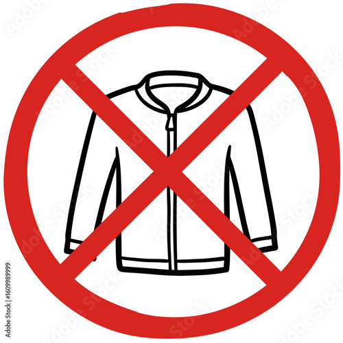 no, jacket, symbol, prohibition, warning, signs, red, circle, cross, line, graphic, illustration, clothing, prohibition sign, outline, icon, style, design, alert, safety, notice, reminder, rule, caution, visual, simple, minimal, graphic design, merchandise, communication, representation, imagery, dependability, avoid, wear, message, alertness, clear, instruction, information, emphasis, attention