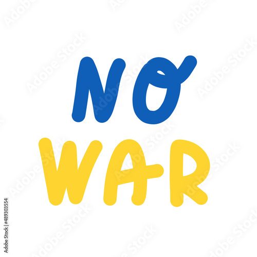 No war slogan colored in blue and yellow color as ukranian flag. Stop fight between countries. Anti-war phrase, peace symbol. Poster for articles, t-shirts, web, print against aggression and violence.