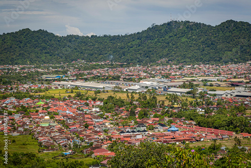 view, panoramic, hill, city, village, landscape, city landscape, mountain, green, nature, cloudscape, cloud