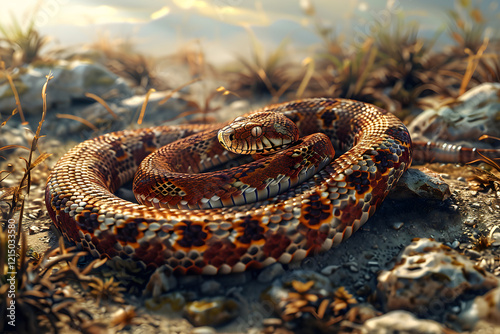 Non-Venomous Snake in Natural Habitat: A Display of Vibrant Patterns and Survival Adaptation