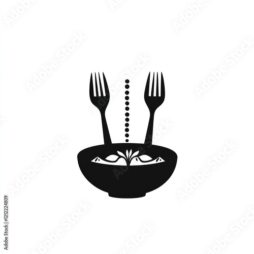 noodle, soup, food, fork, eatery, design, illustration, dish, graphic, logotype, asian, cookery, healthy, eating, vector, image, black, white, simple, modern, silhouette, plate, bowl, abstract, style, elegant, taste, delicious, ramen, chinese, japanese, korean, branding, eat, drink, menu, dining, cafes