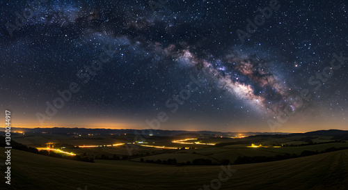 road, sky, highway, landscape, night, asphalt, cloud, sun, travel, nature, horizon, cloud, sunset, journey, way, car, light, space, empty, summer, dark, long, galaxy, abstract, field