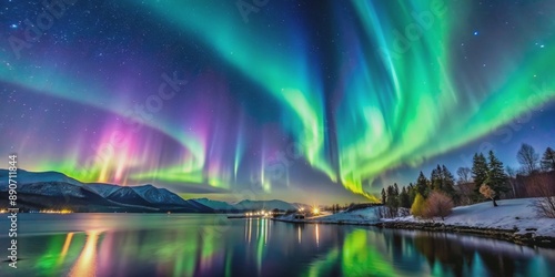 aurora, borealis, lake, night, sky, star, landscape, nature, photo, water, arctic, green, blue, dark, cold, winter, glacé, calm, serene, peaceful, tranquil, mystical, magical, eerie, huge, space, cosmos, universe, milky way, galaxy, light, glow, dancing, movement, stillness, silence, wonder, beauty, awe, inspiration, adventure, exploration, travel, canada, alaska, norge, iceland, finland