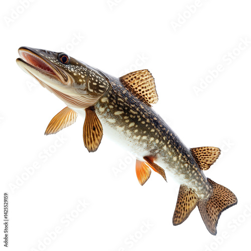 Northern pike swimming gracefully in clear water showcasing vibrant colors and detailed markings