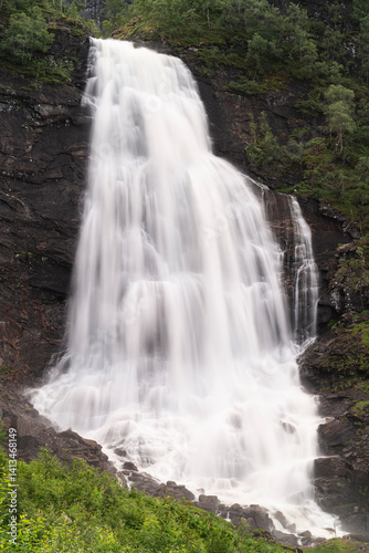 Norway. Fossen Bratte waterfall cascades down cliff.