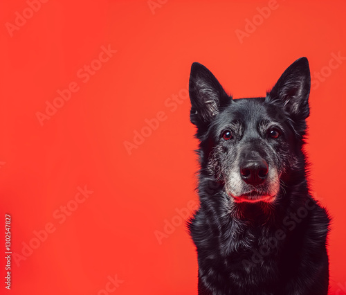 Norwegian Elkhound dog on minimalistic colorful background with Copy Space. Perfect for banners, veterinary ads, pet food promotions, and minimalist designs.