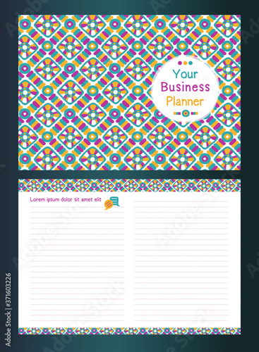 notebook, diary, ethnic, african, ornament, background, page, cover, book, template, illustration, hand-drawn, note, paper, set, pattern, indian, asian, curve, booklet, mosaic, shape, scrapbook, concept, planner, business, blank, lined, organiser, stationery, school, sheet, office, notepad, pad, workbook, copybook, journal, white, turquoise, yellow, water, purple, violet, bright