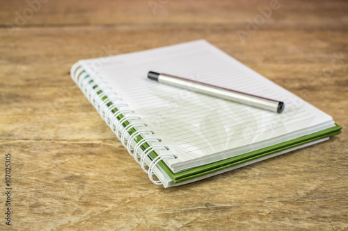 notebook and pen on wooden table, business , education
