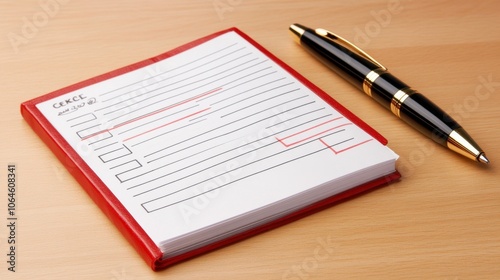 notepad, pen, writing, paper, line, office, stationery, document, note, organisation, checklist, task, planning, work, business, surface, table, design, equipment, tool, communication, record, information, layout, blank, form, creativity, idea, vignetting, journal, style, professional, minimal, elegant, simple, text, print, structure, detail, project