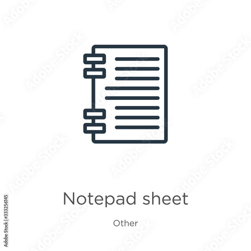 Notepad sheet icon. Thin linear notepad sheet outline icon isolated on white background from other collection. Line vector sign, symbol for web and mobile