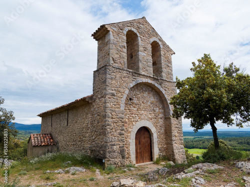 Notre-Dame de la Roque, chapelle de style Roman, patrimoine architectural du village provençal de Moissac-Bellevue (Var)