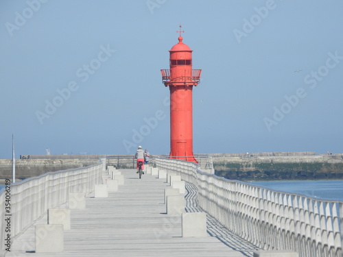levee, lighthouse, sea, water, heaven, light, ocean, docked, coast, blue, round, architecture, white, beach, shore, travel, landmark, building, cloud, landscape, house, island, port