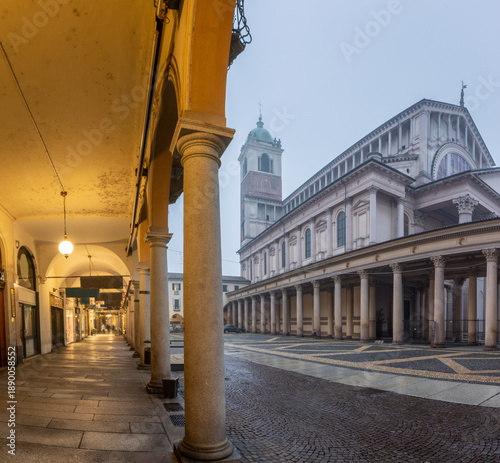 Novara - The Cathedral - Cattedrale di santa maria assunta at dusk and winter fog.